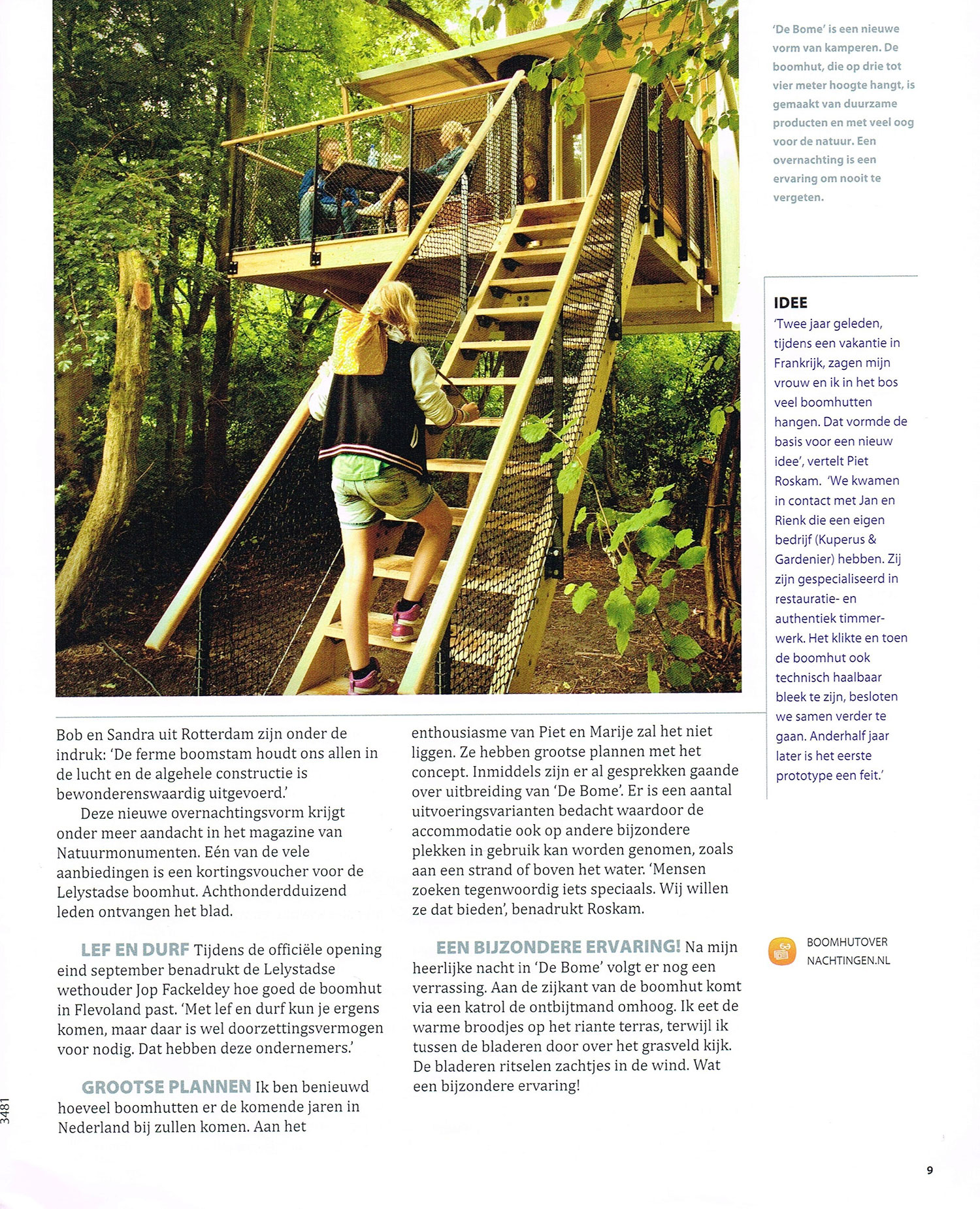 Deze nieuwe overnachtingsvorm krijgt onder meer aandacht in het magazine van Natuurmonumenten. Eén van de vele aanbiedingen is een kortingsvoucher voor de Lelystadse boomhut. Achthonderdduizend leden ontvangen het blad.